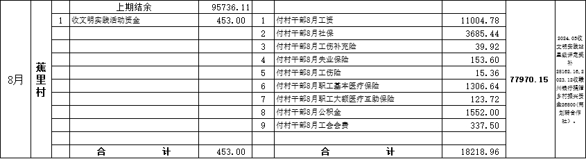 營前鎮(zhèn)蕉里村村級資金銀行存款劃轉支情況表