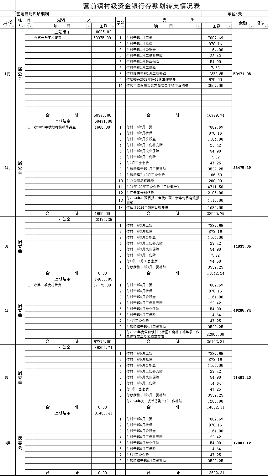 營前鎮(zhèn)營前街居委會財務(wù)收支登記表(1-6月)