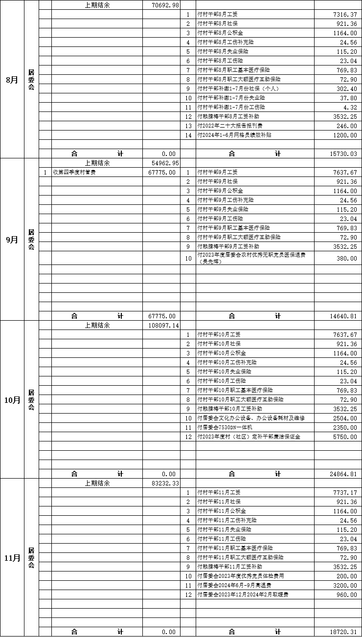 營前鎮(zhèn)營前街社區(qū)2024年8-11月財務收支