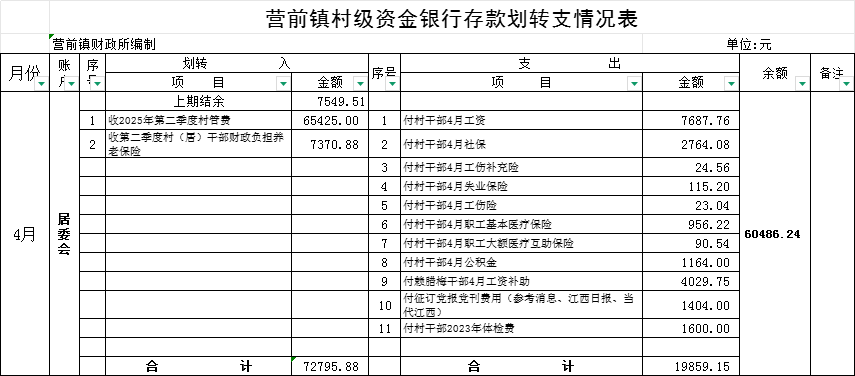2025年4月?tīng)I(yíng)前鎮(zhèn)居委會(huì)財(cái)務(wù)收支登記