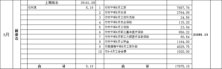 2025年6月營前鎮(zhèn)居委會村級財務收支情況表