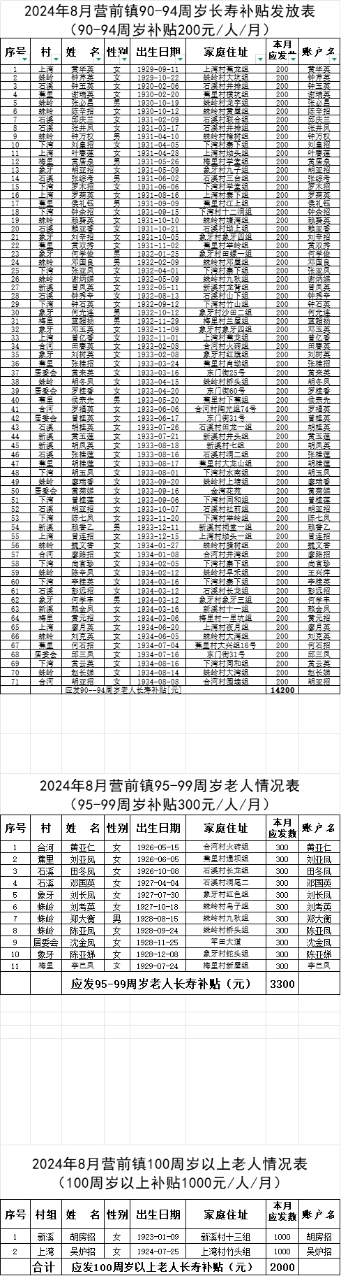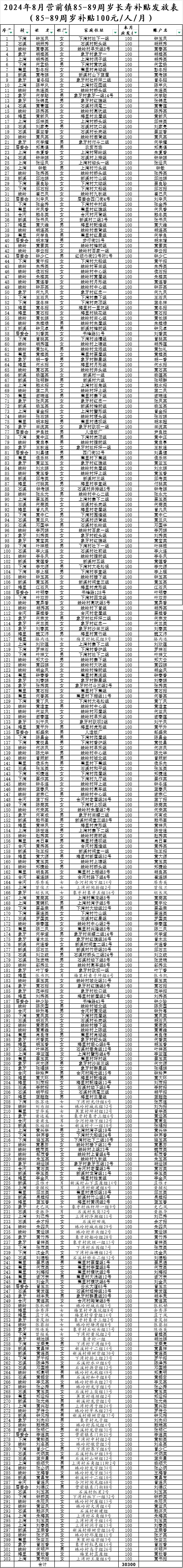 營(yíng)前鎮(zhèn)2024年8月長(zhǎng)壽補(bǔ)貼發(fā)放表