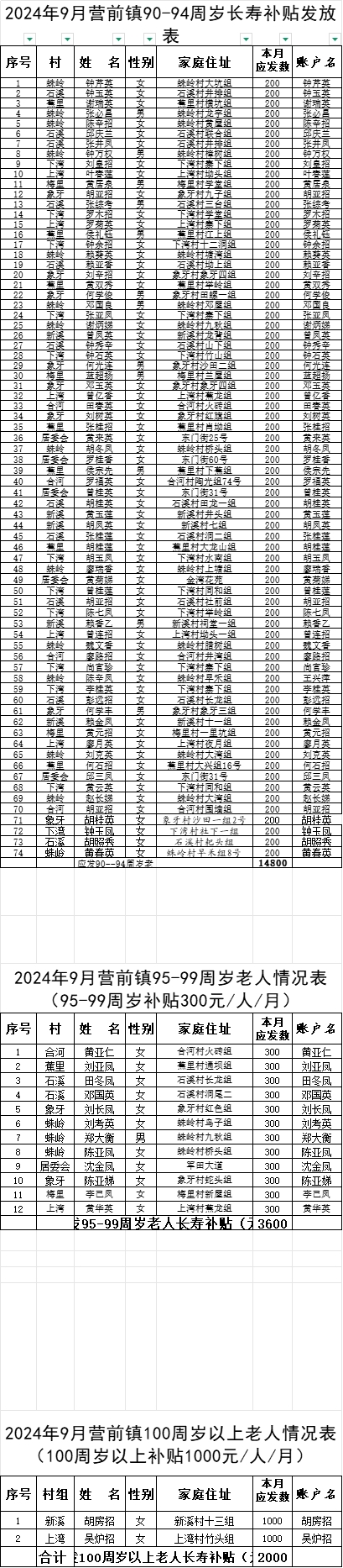 營(yíng)前鎮(zhèn)2024年9月長(zhǎng)壽補(bǔ)貼發(fā)放表