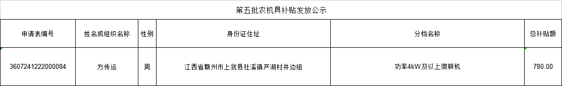 【涉農(nóng)補(bǔ)貼】2022年第五批嚴(yán)湖村農(nóng)機(jī)購置補(bǔ)貼申請(qǐng)公示表