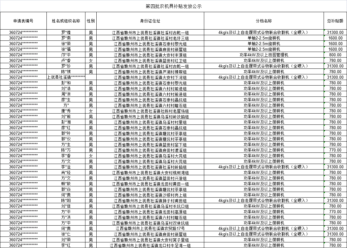 【涉農(nóng)補貼】第四批農(nóng)機具補貼發(fā)放公示