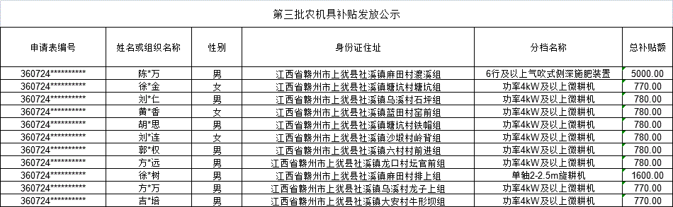 【涉農(nóng)補貼】第三批農(nóng)機具補貼發(fā)放公示