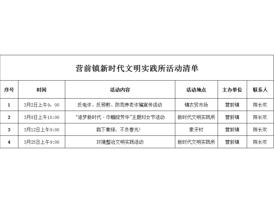 2025年3月營前鎮(zhèn)新時(shí)代文明實(shí)踐所活動(dòng)清單