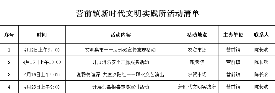 2025年4月?tīng)I(yíng)前鎮(zhèn)新時(shí)代文明實(shí)踐所活動(dòng)清單