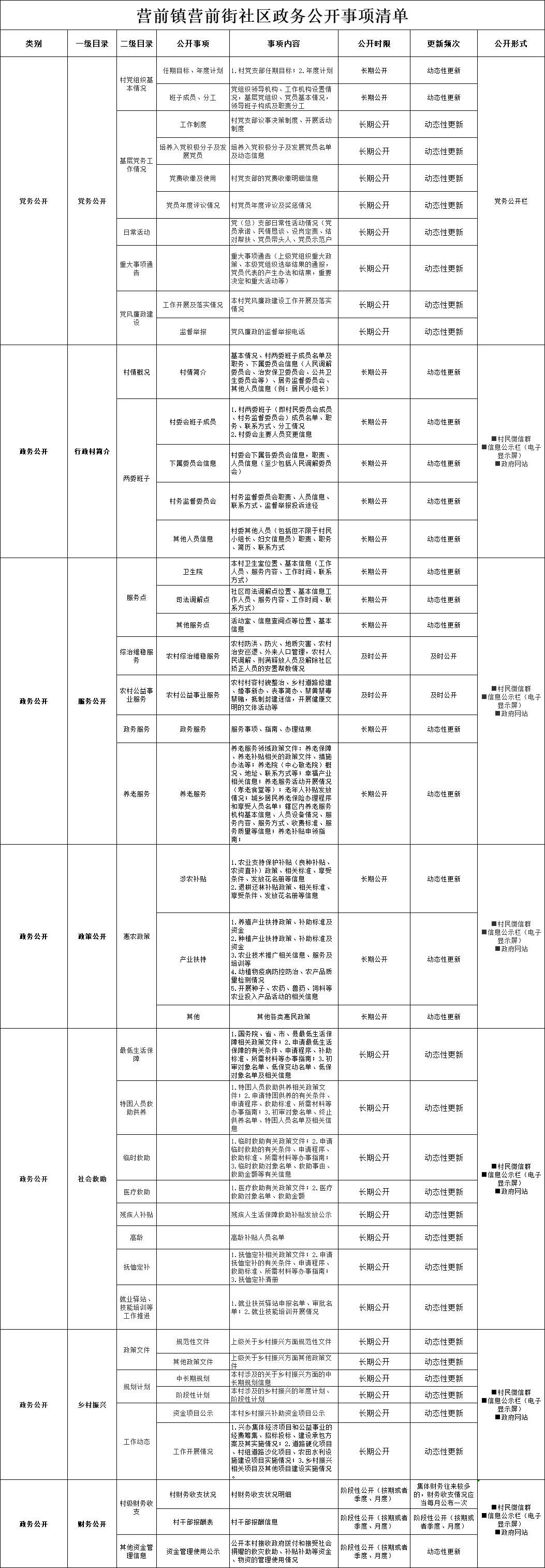 營前鎮(zhèn)營前街社區(qū)政務(wù)公開事項清單