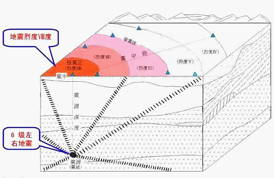 一次地震發(fā)生后,震中區(qū)的破壞最重,烈度最高,這個烈度稱為震中烈度,從震中向四周擴展,地震烈度逐漸減小。我國把烈度劃分為12度,不同烈度的地震,其影響和破壞大體如下: