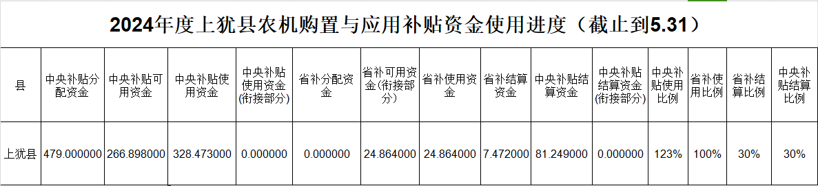 2024年度上猶縣農(nóng)機購置與應(yīng)用補貼資金使用進度(截止到5.31)