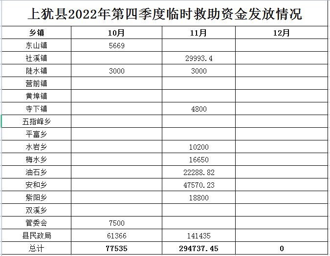 上猶縣2022年第四季度臨時(shí)救助資金發(fā)放情況