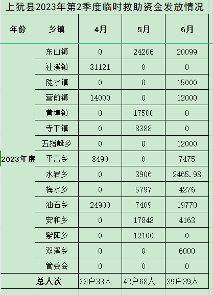 上猶縣2023年第二季度臨時(shí)救助資金發(fā)放情況
