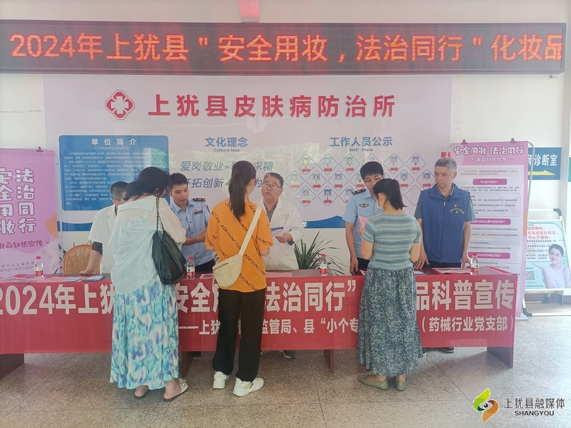 在第18個“5.25愛膚日”來臨之際,近日,上猶縣市場監(jiān)督管理局、縣“小個?!本C合黨委聯(lián)合縣皮膚病防治所、縣藥械行業(yè)黨支部組織開展以“安全用妝 法治同行”為主題的“5.25愛膚日”集中宣傳活動。