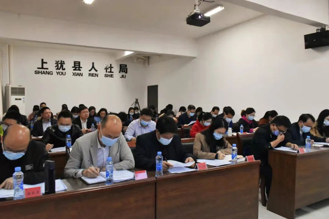 會議分兩個階段進行,第一階段首先由稅務局副局長王海鷗同志解讀《上猶縣2022年度城鄉(xiāng)居民基本養(yǎng)老保險參保繳費工作方案》,社保中心主任盧盛群同志宣讀《關于表彰2021年度全縣城鄉(xiāng)居民養(yǎng)老保險工作先進鄉(xiāng)(鎮(zhèn))和先進個人的通報》,通報表彰黃埠鎮(zhèn)、水巖鄉(xiāng)、梅水鄉(xiāng)、社溪鎮(zhèn)、營前鎮(zhèn)、寺下鎮(zhèn)以及先進個人涂苗苗、羅靜、田秀蘭、羅燕華、方娛、宋余兵。派駐第二紀檢監(jiān)察組組長鐘文華同志從紀律檢查和國家監(jiān)察角度就基金安全方面做了警示講話。他強調(diào)牢固樹立“三種意識”、強化“三個責任”,即樹立政治意識、法紀意識、廉潔意識,強化政治責任、社會責任、家庭責任,緊繃基金安全這條弦,切實筑牢拒腐防變的思想防線和織密社?;鸢踩W(wǎng)。最后,縣委常委、副縣長胡正福同志作重要講話,充分肯定了2021年度城鄉(xiāng)居民養(yǎng)老保險取得的成績,精準指出目前存在的問題,并從提升思想動力、提升參保擴面活力、提升基金安全保護力三方面,要求全縣各鄉(xiāng)鎮(zhèn)、各部門提高政治站位,清醒認識到城鄉(xiāng)居民養(yǎng)老保險的重要性和緊迫感,要突出重點強宣傳、部門聯(lián)動抓征繳,要建強隊伍優(yōu)服務、嚴格經(jīng)辦保安全。在總結(jié)講話中,人社局黨組書記、局長彭行文同志強調(diào),一是與會同志及時傳達好會議精神,早動員早部署;二是抓宣傳提升知曉率;三是強隊伍提升履職能力;四是壓責任提升參保率。