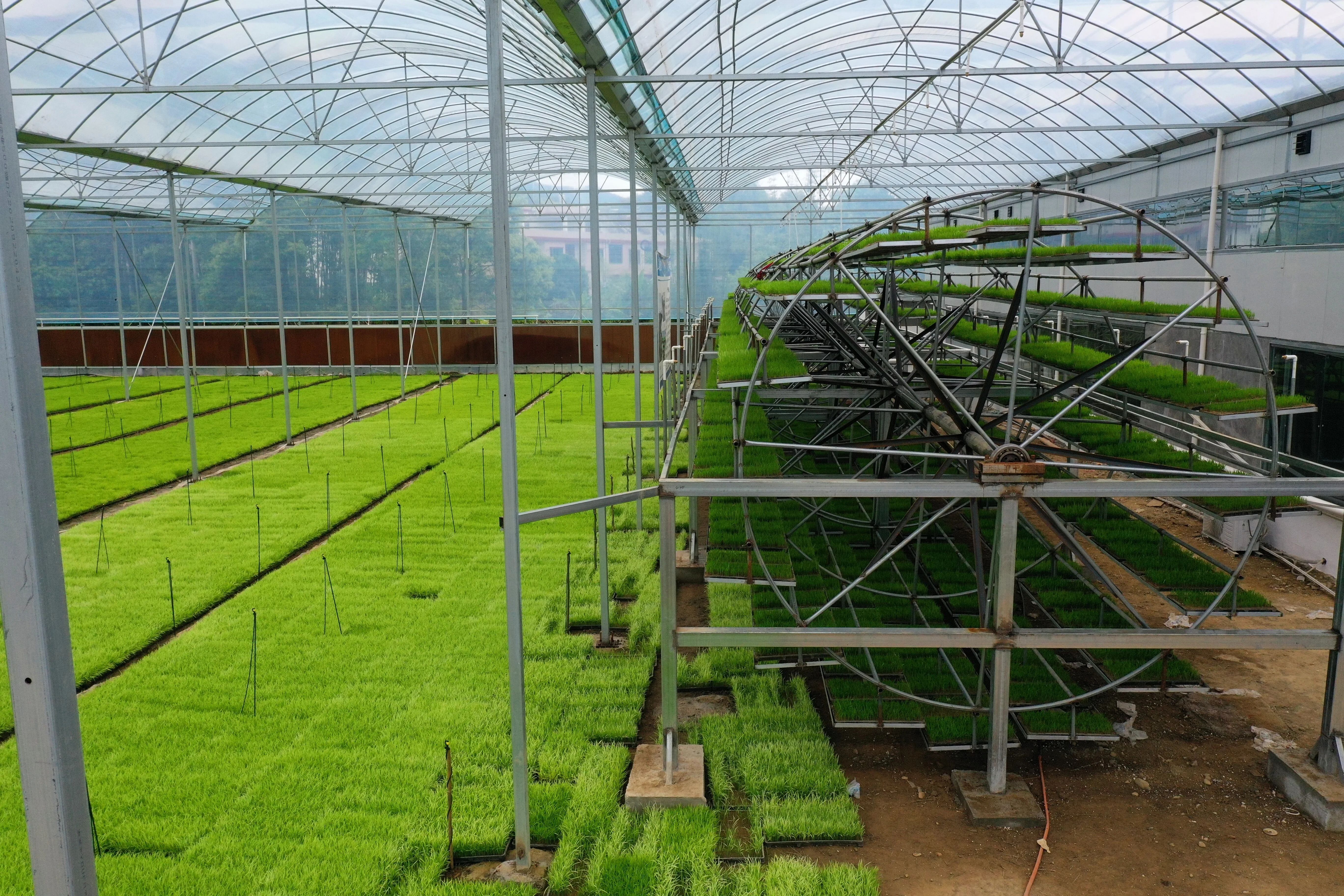 “贛南山地丘陵地區(qū)耕地資源稀少,適宜育秧的秧田更少,在生產(chǎn)勞動(dòng)中,我們歸心農(nóng)業(yè)數(shù)字化工廠自行研發(fā)出全自動(dòng)立體育秧塔,通過農(nóng)業(yè)科學(xué)院專家的指導(dǎo),正式運(yùn)行成功。這套設(shè)備占地160平米一組,單季可為300畝大田提供優(yōu)質(zhì)秧苗,用地效率是原來(lái)水田育秧的30倍,是傳統(tǒng)育秧的3倍,設(shè)備后期還將集成智慧噴淋,輔助燈光,數(shù)字生長(zhǎng)模型等苗期管護(hù)系統(tǒng),為山地丘陵地區(qū)提高用地效率和種植效率作出貢獻(xiàn)。”上猶歸心農(nóng)業(yè)數(shù)字化工廠負(fù)責(zé)人、農(nóng)民土專家、高級(jí)農(nóng)藝師余茂林對(duì)記者說(shuō)。