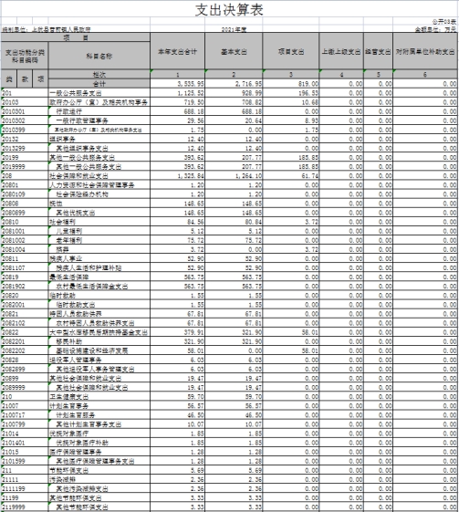 本年支出的具體構(gòu)成為:基本支出2716.95萬元,占76.84%;項目支出819萬元,占23.16%;經(jīng)營支出0萬元,占0%;其他支出(對附屬單位補助支出、上繳上級支出)0萬元,占0%。