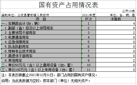 截止2021年12月31日,本部門(單位)國有資產(chǎn)占用情況見公開10表《國有資產(chǎn)占用情況表》。其中車輛中的其他用車主要是行政執(zhí)法用車、消防車。