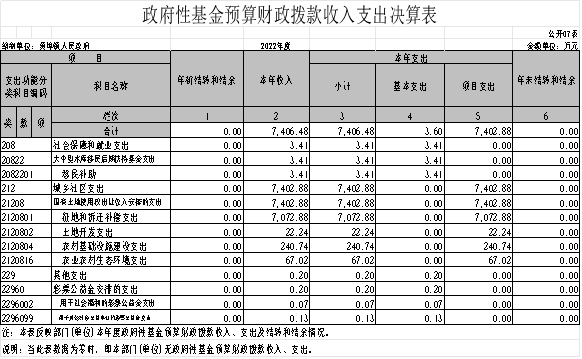 七、政府性基金預(yù)算財(cái)政撥款收入支出決算表
