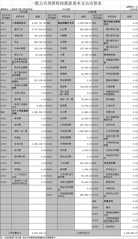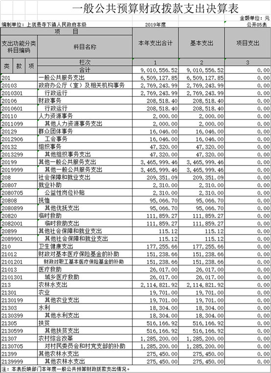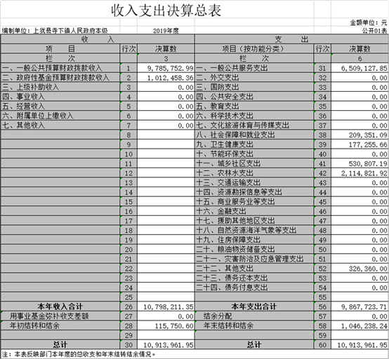 寺下鎮(zhèn)人民政府2019年度部門決算