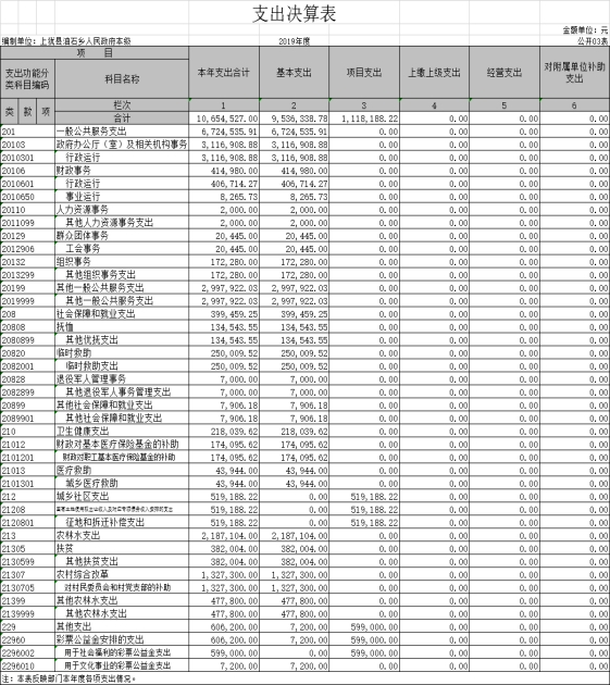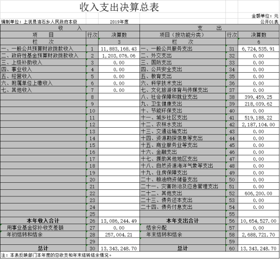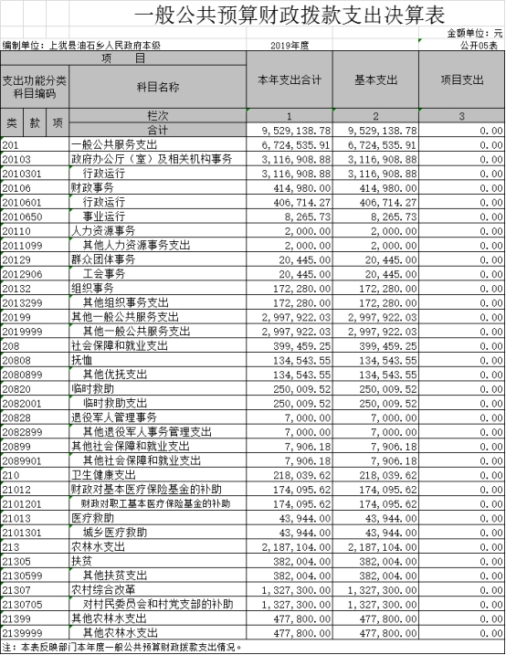 上猶縣油石鄉(xiāng)人民政府2019年度部門(mén)決算