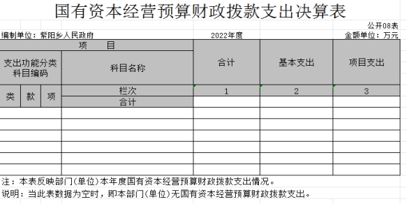 八、國(guó)有資本經(jīng)營(yíng)預(yù)算財(cái)政撥款支出決算表