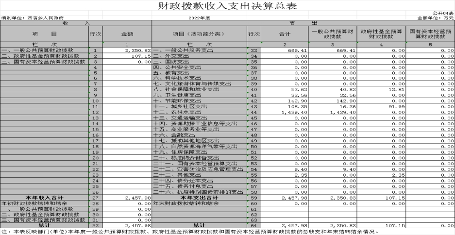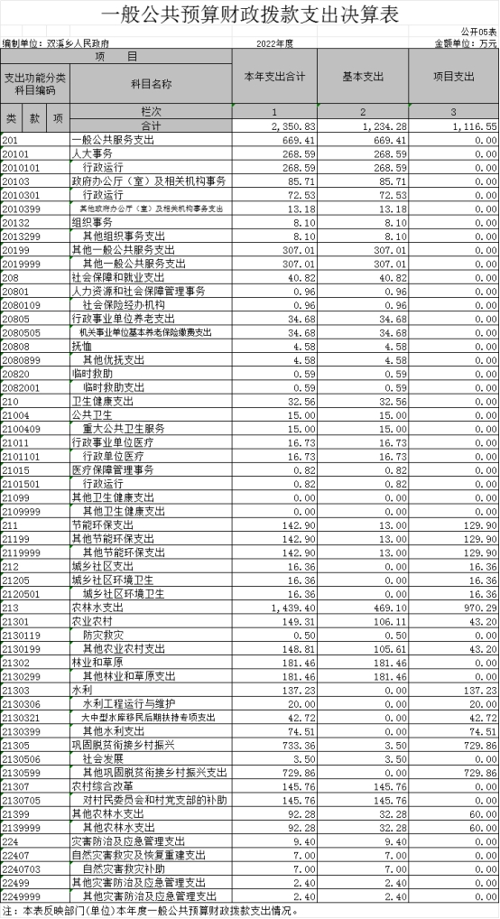 上猶縣雙溪鄉(xiāng)人民政府2022年度部門決算