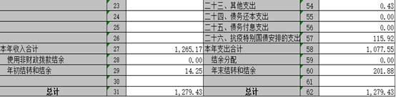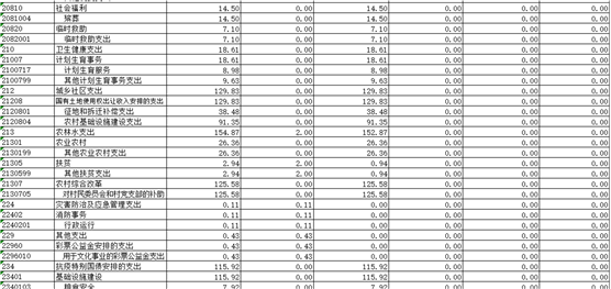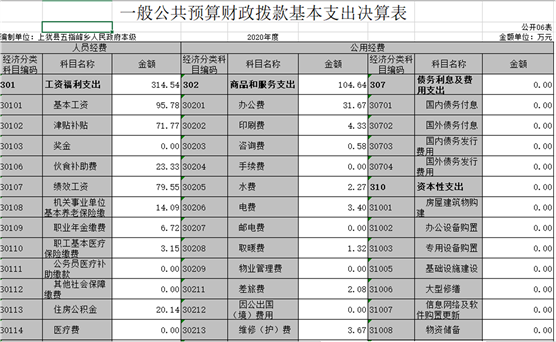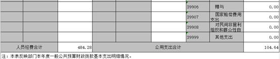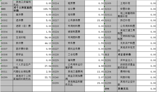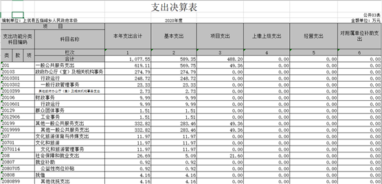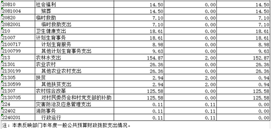 三、財政撥款支出決算情況說明 本部門2020年度財政撥款本年支出年初預算數(shù)為 545.64 萬元,決算數(shù)為1077.55萬元,完成年初預算的197.48 %,主要原因:一是項目支出增加;二是抗疫特別國債安排的支出增加。其中: (一)一般公共服務(wù)支出年決算數(shù)為619.11萬元, (二)、文化旅游體育與傳媒支出11.97萬元 (三)、社會保障和就業(yè)支出26.69萬元 (四)、衛(wèi)生健康支出18.61萬元 (五)、城鄉(xiāng)社區(qū)支出129.83萬元 (六)、農(nóng)林水支出154.87萬元 (七)、抗疫特別國債安排的支出115.92萬元 四、一般公共預算財政撥款基本支出決算情況說明 本部門2020年度一般公共預算財政撥款基本支出 589.35 萬元,按功能分類其中: (一)工資福利支出314.54萬元,較2019年減少 81.26萬元,下降20.5 %,主要原因是:人員減少。 (二)商品和服務(wù)支出 104.64萬元,較2019年減少16.09 萬元,下降13.3%,主要原因是:壓縮開支。 (三)對個人和家庭補助支出 170.16萬元,較2019年增加 8 萬元,增長5.2%,主要原因是:生活補貼救濟費等增加。 (四)資本性支出 0 萬元,較2019年增加(減少) 0 萬元,增長(下降)0 %. 五、一般公共預算財政撥款“三公”經(jīng)費支出決算情況說明 本部門2020年度一般公共預算財政撥款“三公”經(jīng)費支出年初預算數(shù)為20.17萬元,決算數(shù)為20.17 萬元,完成預算的 100 %,決算數(shù)較2019年減少5.11 萬元,下降24.85 %,其中: (一)因公出國(境)支出年初預算數(shù)為 0 萬元,決算數(shù)為 0萬元,完成預算的 0%,決算數(shù)較2019年增加(減少) 0 萬元. (二)公務(wù)接待費支出年初預算數(shù)為 15.49 萬元,決算數(shù)為15.49萬元,完成預算的100 %。全年國內(nèi)公務(wù)接待 136 批,累計接待 1832 人次,其中外事接待 0 批,累計接待 0 人次. (三)公務(wù)用車購置及運行維護費支出 0 萬元,其中公務(wù)用車購置年初預算數(shù)為 0 萬元,決算數(shù)為0萬元,完成預算的 0%,決算數(shù)較2019年增加(減少)0 萬元,下降 0 %,全年購置公務(wù)用車 0 輛。公務(wù)用車運行維護費支出年初預算數(shù)為4.68 萬元,決算數(shù)為4.68 萬元,完成預算的 100 %,決算數(shù)較2019年減少 1.17 萬元,下降 20 %,主要原因是公車維修費減少,年末公務(wù)用車保有 2 輛。 六、機關(guān)運行經(jīng)費支出情況說明 本部門2020年度機關(guān)運行經(jīng)費支出 104.46 萬元(與部門決算中行政單位和參照公務(wù)員法管理事業(yè)單位一般公共預算財政撥款基本支出中公用經(jīng)費之和一致),較上年決算數(shù)減少19.58萬元,降低 15.79 %,主要原因是:辦公設(shè)施設(shè)備購置經(jīng)費減少,落實過緊日子要求壓減。 七、政府采購支出情況說明 本部門2020年度政府采購支出總額 0 萬元,其中:政府采購貨物支出 0 萬元、政府采購工程支出 0 萬元、政府采購服務(wù)支出 0 萬元。授予中小企業(yè)合同金額 0 萬元,占政府采購支出總額的0 %,其中:授予小微企業(yè)合同金額 0 萬元,占政府采購支出總額的 0 %。(省級部門公開的政府采購金額的計算口徑為:本部門納入2020年部門預算范圍的各項政府采購支出金額之和,不包括涉密采購項目的支出金額。) 八、國有資產(chǎn)占用情況說明。 截止2020年12月31日,本部門(單位)國有資產(chǎn)占用情況見公開10表《國有資產(chǎn)占用情況表》。其中車輛中的其他用車主要是公務(wù)用車。 九、預算績效情況說明 (一)績效管理工作開展情況。 根據(jù)預算績效管理要求,我部門組織對2020年度一般公共預算項目支出所有二級項目 0 個全面開展績效自評,共涉及資金0 萬元,占一般公共預算項目支出總額的 0 %。