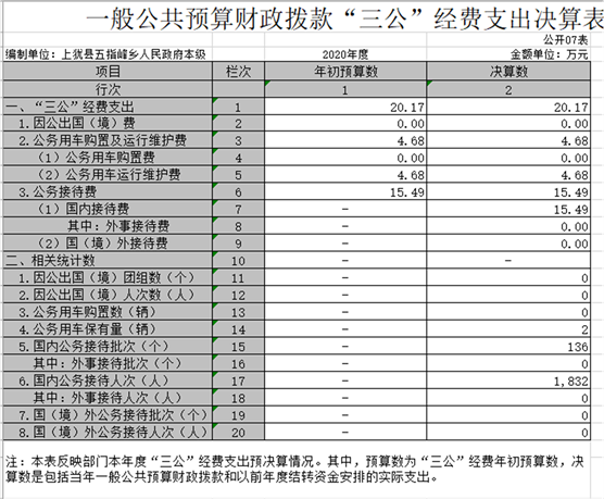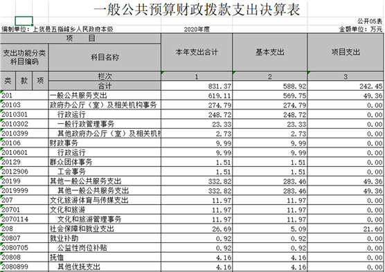 五指峰鄉(xiāng)人民政府部門2020年度部門決算