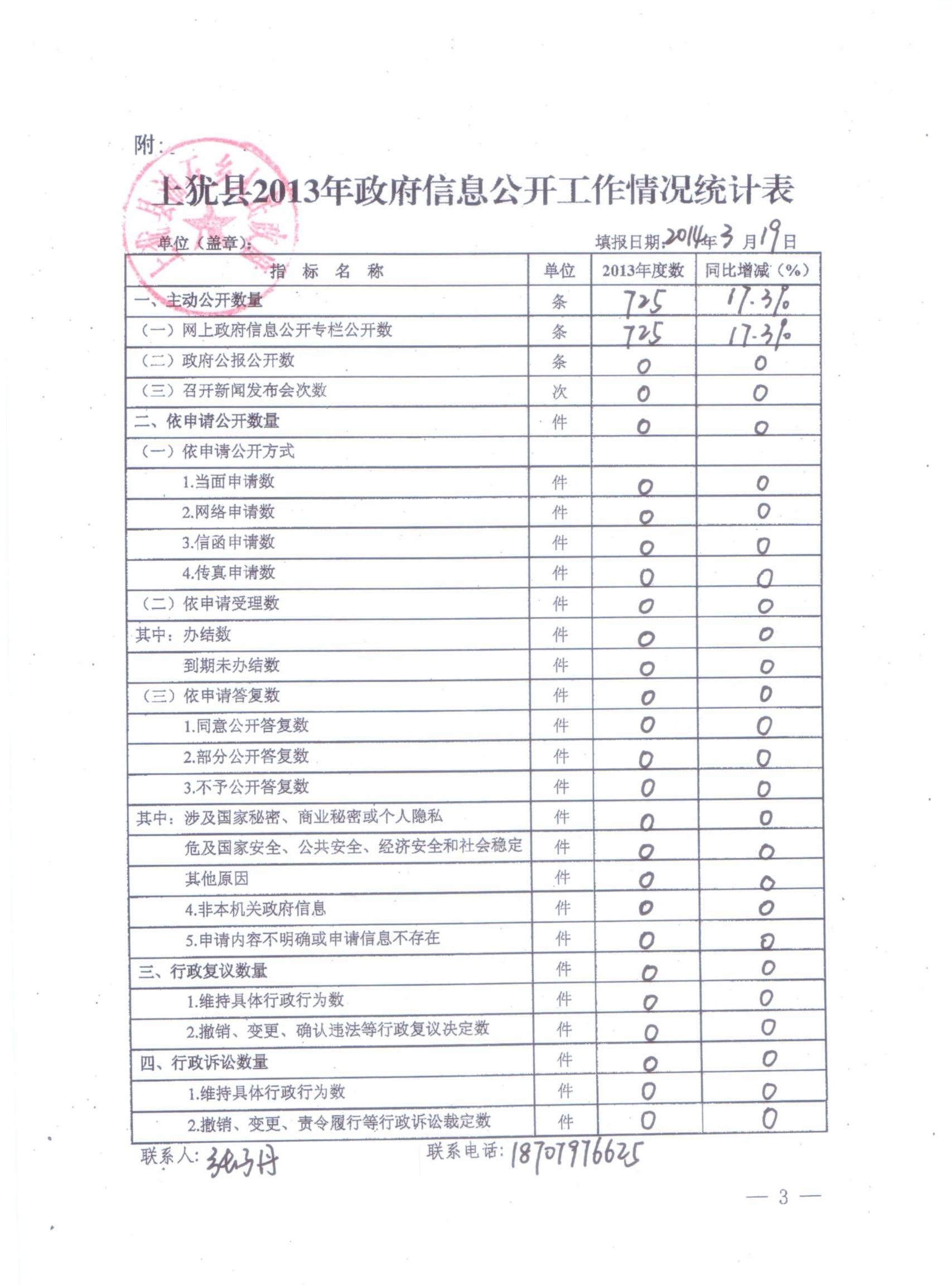 本年度報(bào)告是根據(jù)《中華人民共和國(guó)政府信息公開(kāi)條例》(以下簡(jiǎn)稱《條例》)和《贛州市政府信息公開(kāi)規(guī)定》(以下簡(jiǎn)稱《規(guī)定》)要求,由油石鄉(xiāng)人民政府編制。本年度報(bào)告由概述、主動(dòng)公開(kāi)政府信息情況、依申請(qǐng)公開(kāi)政府信息情況、政府信息公開(kāi)的收費(fèi)及減免情況、因政府信息公開(kāi)申請(qǐng)行政復(fù)議、提起行政訴訟的情況,主要問(wèn)題和改進(jìn)情況、其他需要報(bào)告的事項(xiàng)等七部分組成。本報(bào)告中所列數(shù)據(jù)的統(tǒng)計(jì)期限自2013年1月1日起至2013年12月31日止。如對(duì)本年度報(bào)告有任何疑問(wèn),請(qǐng)與油石鄉(xiāng)人民政府辦公室聯(lián)系((地址:油石鄉(xiāng)人民政府政府大院,郵編:341201,聯(lián)系電話:0797-8570149,電子郵箱:syysxxcb2007@163.com))。