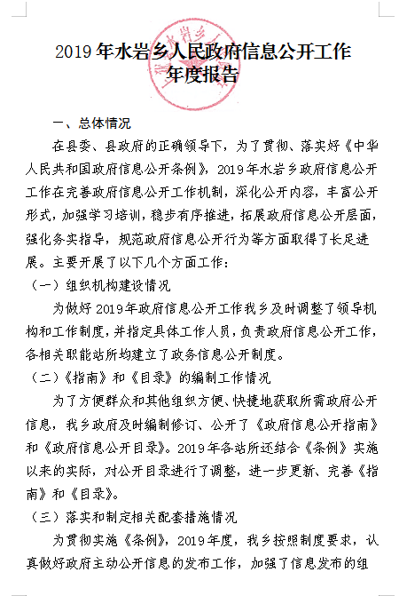 2019年水巖鄉(xiāng)人民政府信息公開工作年度報(bào)告