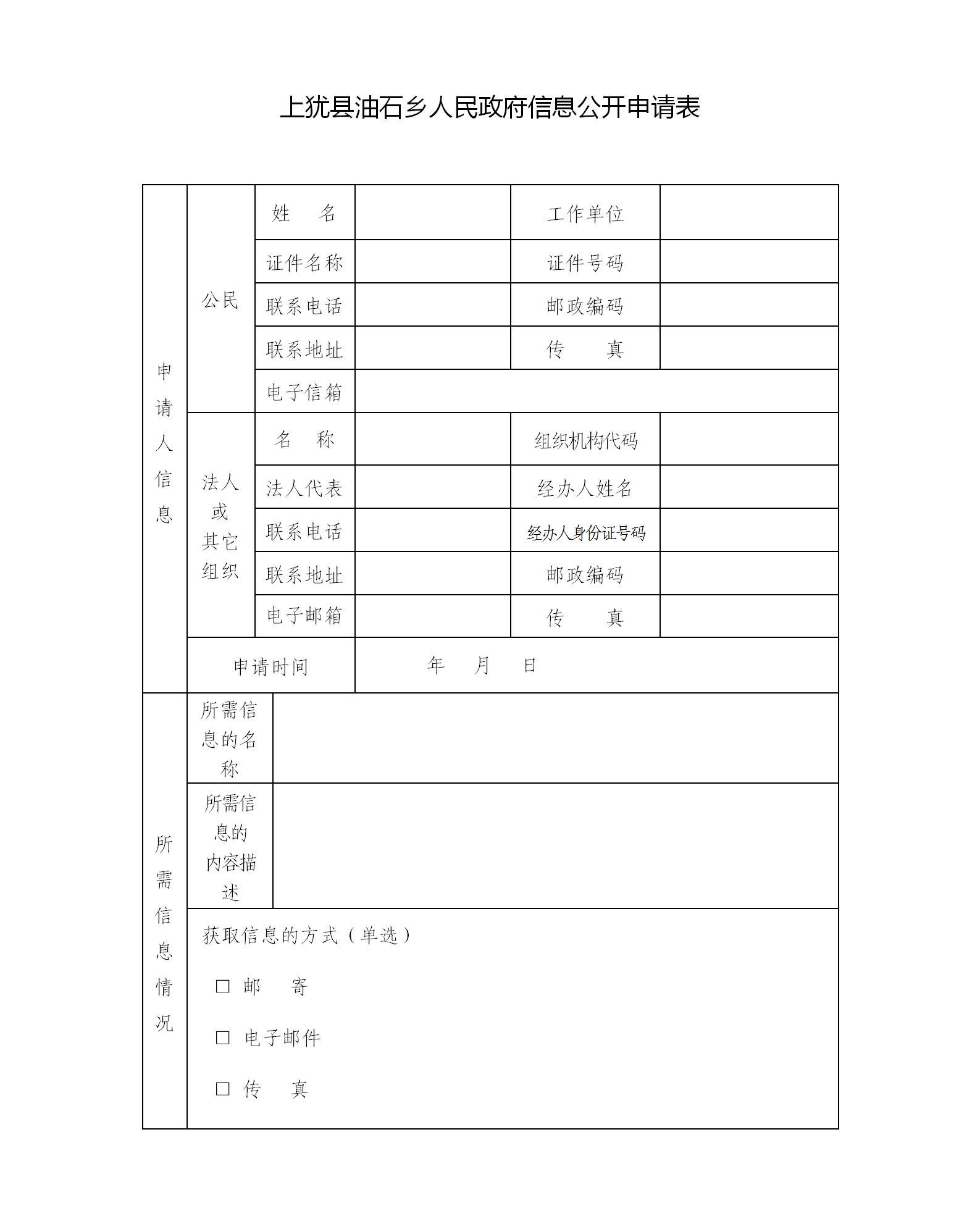 (4)當(dāng)面申請:申請人可以到油石鄉(xiāng)政府辦公室,當(dāng)面遞交政府信息公開申請。