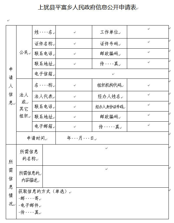 上猶縣平富鄉(xiāng)人民政府信息公開申請(qǐng)表