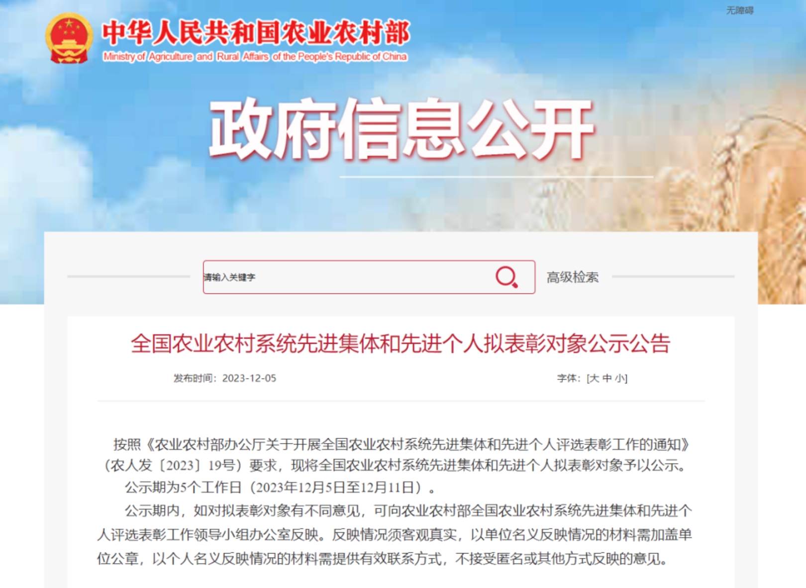 全國農(nóng)業(yè)農(nóng)村系統(tǒng)先進(jìn)個(gè)人擬表彰名單