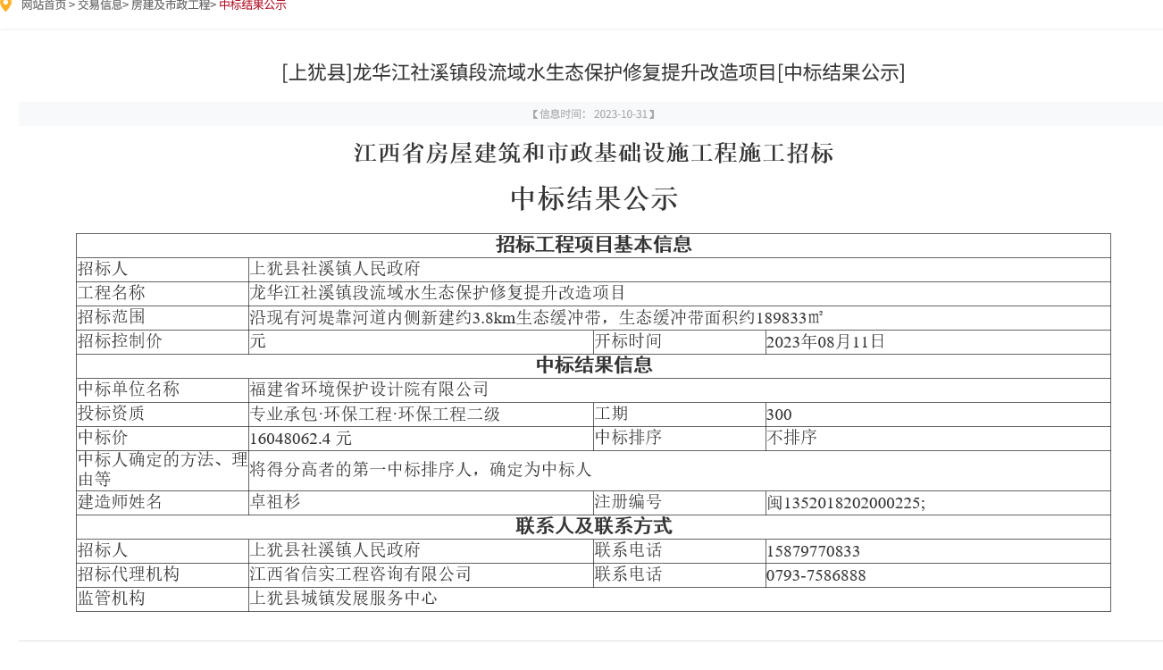 [上猶縣]龍華江社溪鎮(zhèn)段流域水生態(tài)保護(hù)修復(fù)提升改造項目[中標(biāo)結(jié)果公示1