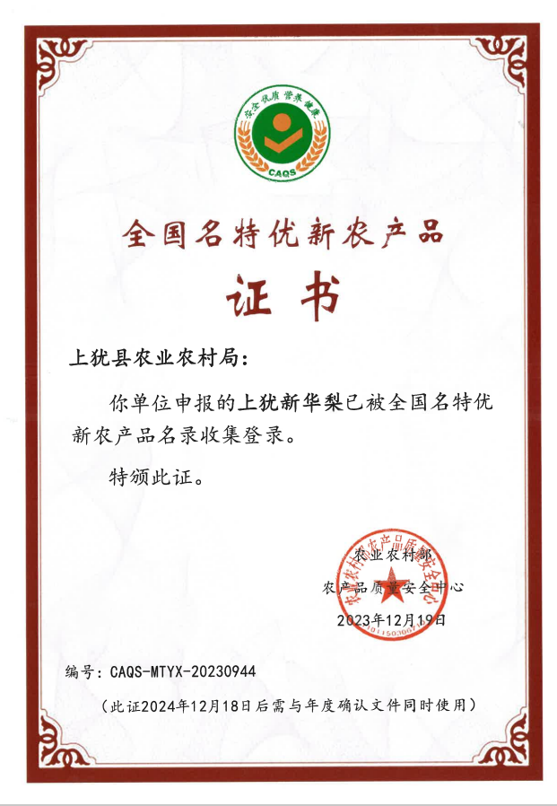 上猶縣寺下鎮(zhèn)新華村“新華梨”榮獲入選全國“名特優(yōu)”新農(nóng)產(chǎn)品,經(jīng)農(nóng)業(yè)農(nóng)村部認(rèn)可的綠色有機(jī)水果。