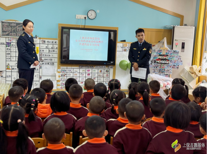 藥品安全進(jìn)校園,社校共育文明花。上猶縣市監(jiān)局藥械化股工作人員來到上猶縣第一幼兒園,通過觀看安全用藥用妝卡通視頻宣傳片、有獎(jiǎng)問答、發(fā)放宣傳單等方式,讓老師和小朋友了解安全用藥常識,通過“小手拉大手”、制作發(fā)布活動公益短視頻提升大家安全用藥的意識和能力,筑牢家庭安全用藥防線。