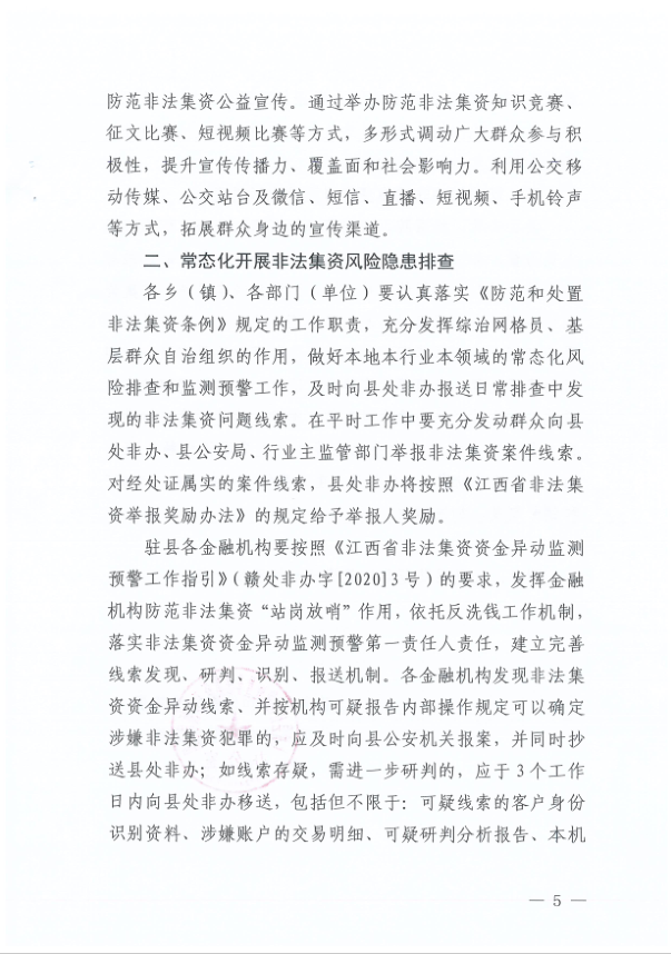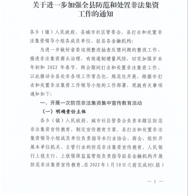 關(guān)于進(jìn)一步加強(qiáng)全縣防范和處置非法集資工作的通知