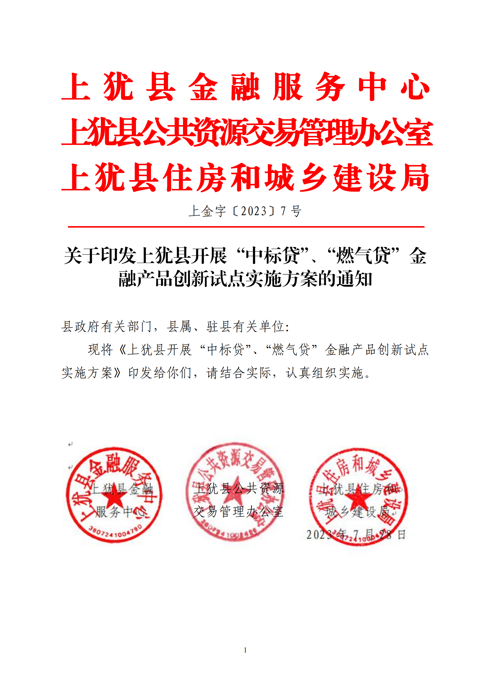 【深化綠色金融改革創(chuàng)新和普惠金融改革試驗(yàn)區(qū)建設(shè)】關(guān)于印發(fā)上猶縣開展“中標(biāo)貸”、“燃?xì)赓J”金融產(chǎn)品創(chuàng)新試點(diǎn)實(shí)施方案的通知
