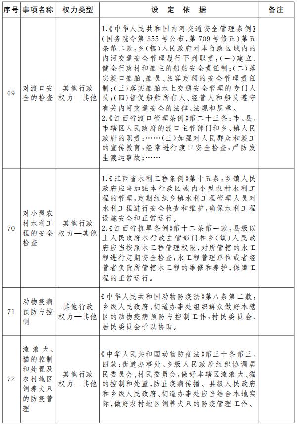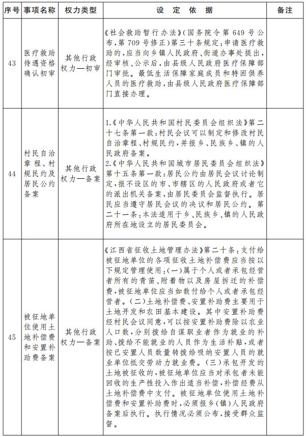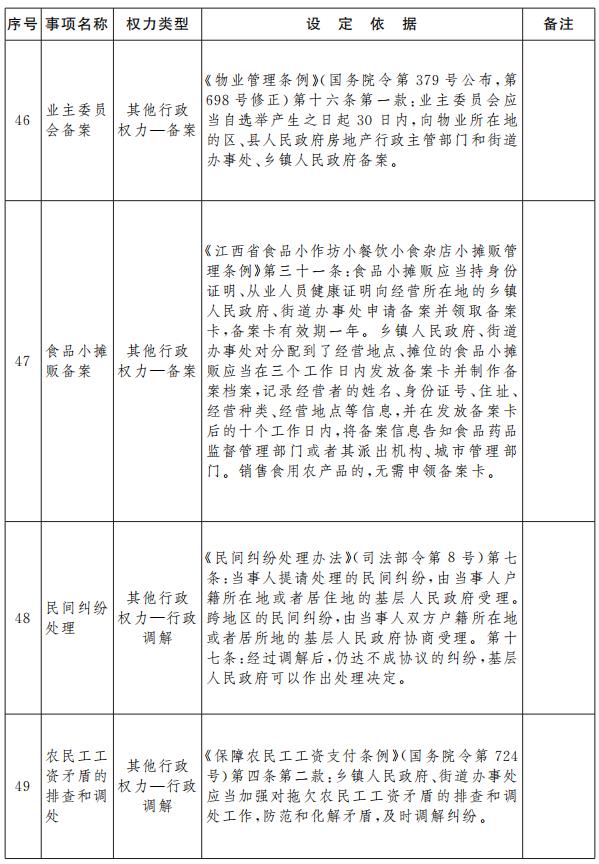 江西省鄉(xiāng)鎮(zhèn)(街道)行政權(quán)力指導(dǎo)目錄(2021年版)