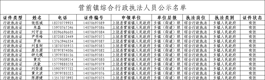 營前鎮(zhèn)綜合行政執(zhí)法人員公示名單