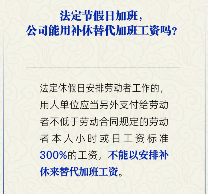 【人社日課·9月17日】法定節(jié)假日加班,公司能用補(bǔ)休替代加班工資嗎?