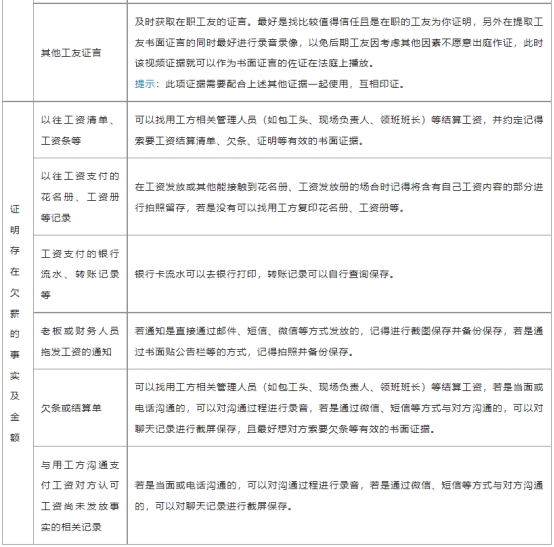 在施工過程中,注意留存在該單位打工和其拖欠工資的證據(jù)。這些證據(jù)包括出入證、臨時(shí)工作證、考勤表、工資單、欠條等。其中工資單和欠條需要建筑工地勞務(wù)、總包企業(yè)現(xiàn)場相關(guān)負(fù)責(zé)人針對你所完成工程量的產(chǎn)值進(jìn)行簽字確認(rèn)。
