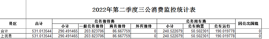 2022年第二季度三公消費監(jiān)控統(tǒng)計表