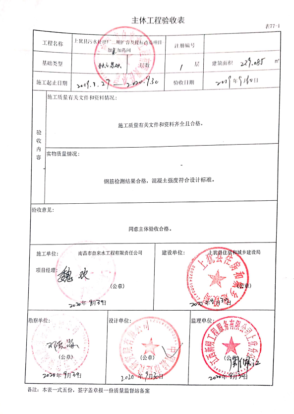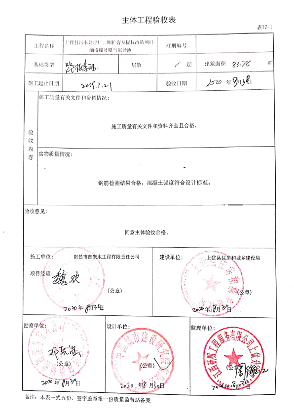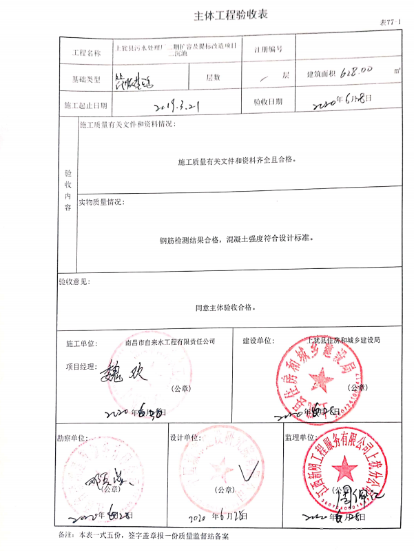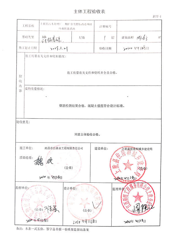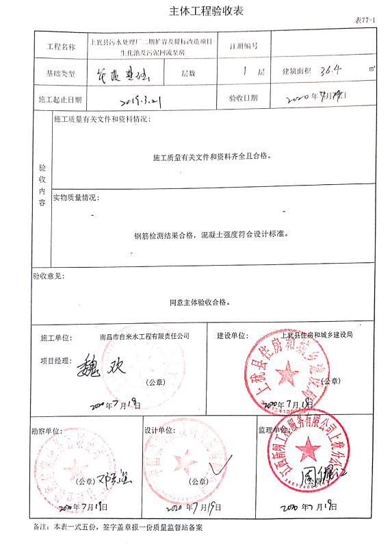 上猶縣污水處理廠(chǎng)二期擴(kuò)容及提標(biāo)改造項(xiàng)目主體驗(yàn)收