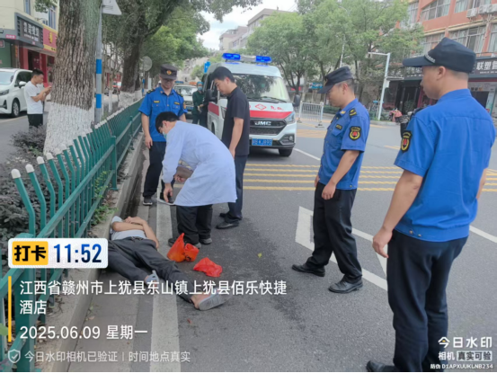 6月9日11點50分,當(dāng)大多數(shù)人正匆匆回家時,一場與時間賽跑的暖心救援在備田大道新車站路段悄然上演。上猶縣城市管理局執(zhí)法大隊張申、廖祖福、劉健等6名隊員在日常巡查途中,發(fā)現(xiàn)一名路人突然暈倒在路邊,他們立即停下腳步,沖向現(xiàn)場,用實際行動詮釋了“人民城管為人民”的初心。