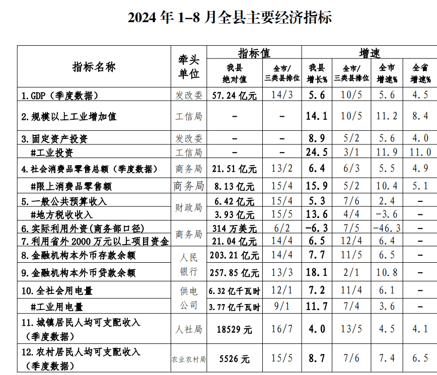 2024年1-8月全縣主要經(jīng)濟指標(biāo)