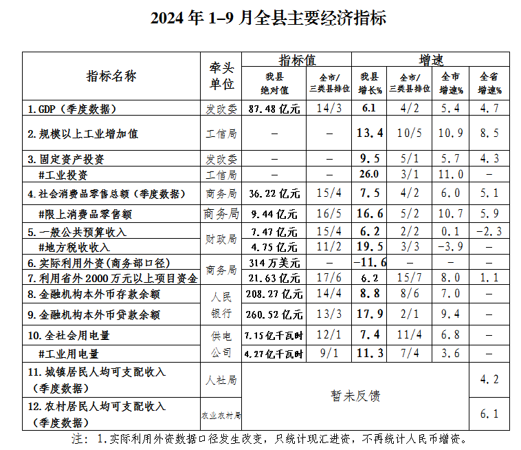 2024年1-9月全縣主要經(jīng)濟指標