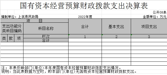 八、國有資本經(jīng)營預(yù)算財(cái)政撥款支出決算表