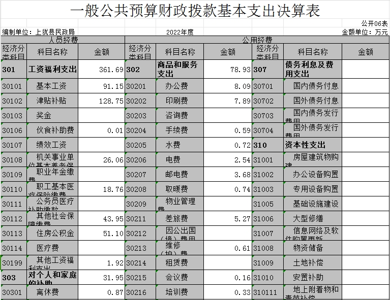 六、一般公共預(yù)算財(cái)政撥款基本支出決算表